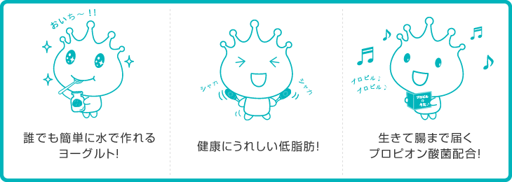 500mLの水にプロピル1袋をよく溶かし、室温またはヨーグルトメーカーで12~30時間固まるまで発酵させるだけで誰でも簡単にヨーグルトが作れます。
