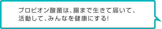 乳酸菌やビフィズス菌の多くは、腸に届く前に死んでしまいます。プロピオン酸菌SI26株、SI41株は腸まで生きて届き、あなた自身の体内の善いものを増やしてくれます。